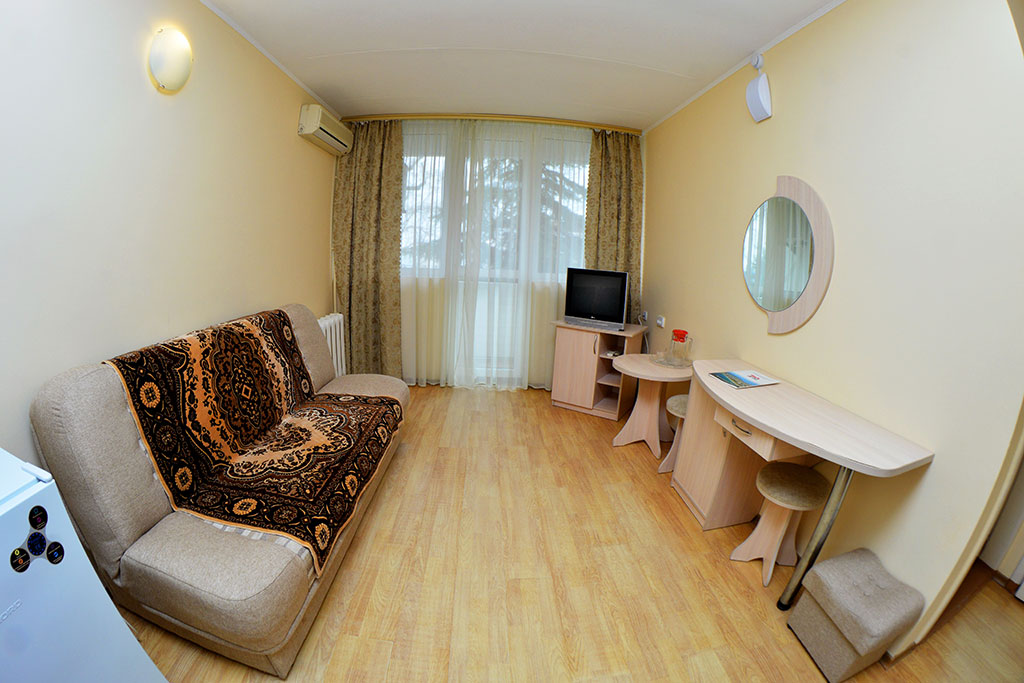 Номера со всеми удобствами оснащены кондиционерами, холодильниками, телевизорами, телефонами.