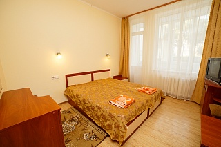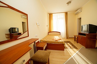 Светлые и уютные номера имеют совмещенный санузел с ванной, кондиционер, телевизор, холодильник, застекленную лоджию.
